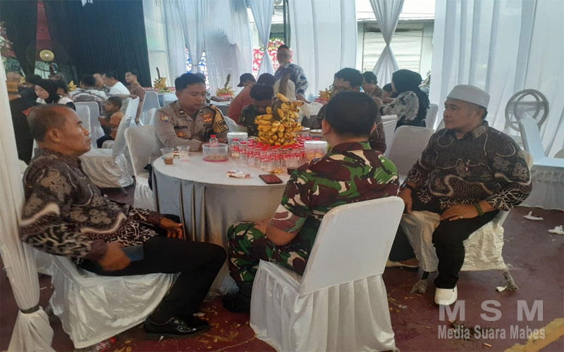 Ratusan tamu undangan yang terdiri dari keluarga, saudara, sahabat, serta warga sekitar turut hadir untuk memberikan doa restu kepada kedua mempelai. Deretan karangan bunga bertuliskan “Happy Wedding” tampak menghiasi area pesta, menambah semarak suasana.