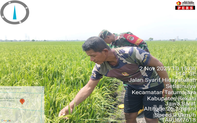 MediaSuaraMabes, Bekasi – Dalam rangka mendukung program ketahanan pangan nasional yang digagas oleh Presiden Republik Indonesia, Babinsa Desa Setiamulya Sertu Parmadi melaksanakan kegiatan penanaman padi sebagai wujud nyata pelaksanaan daya tahan pangan di wilayah binaannya.
