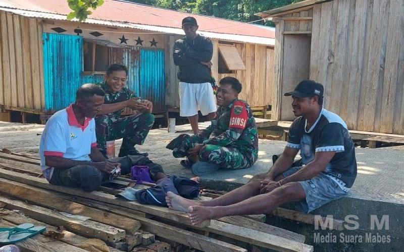 MediaSuaraMabes, Kepulauan Yapen – Personel Babinsa Koramil 1709-02/Dawai, Serka Aris dan Praka Uman melaksanakan Komunikasi Sosial (Komsos) bersama warga Kampung Kaipuri, Distrik Yapen Timur, Kabupaten Kepulauan Yapen, dalam upaya meningkatkan kesadaran masyarakat akan pentingnya menjaga keamanan lingkungan serta kewaspadaan dalam melaut di tengah kondisi cuaca yang tidak menentu, Selasa (08/07/2025).
