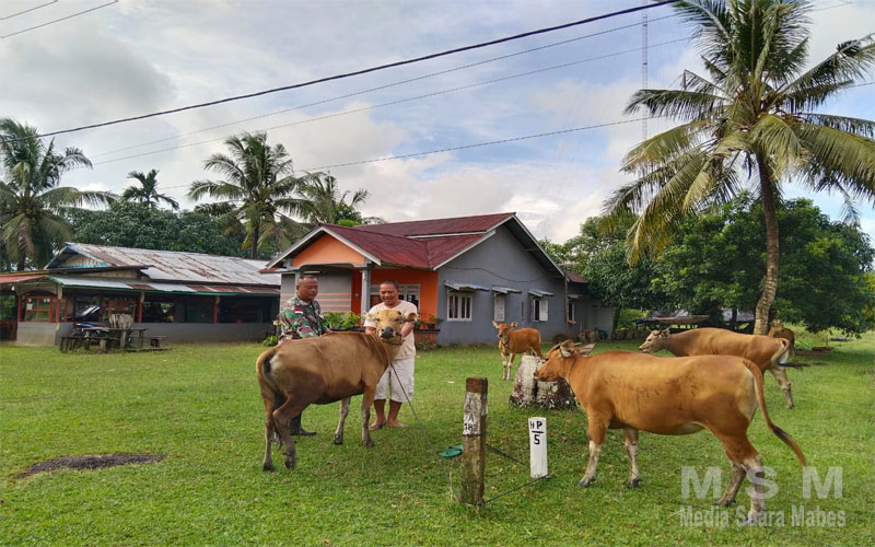 “Peternakan sapi potong diperlukan upaya pengembangan pembibitan sapi secara berkelanjutan. Dengan program pembibitan yang bisa di andalkan melalui pengaturan perkawinan dengan menggunakan ternak-ternak unggul, baik kawin alami maupun kawin suntik.” jelas Babinsa.