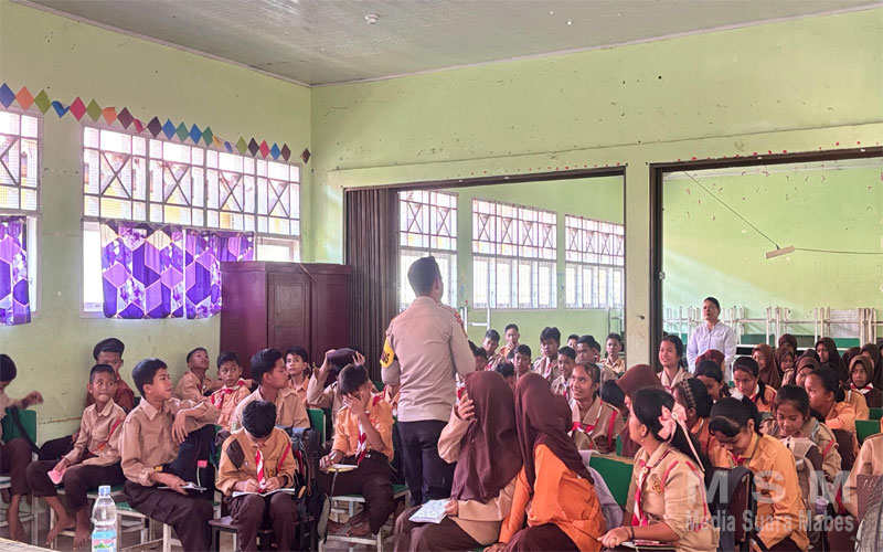 MediaSuaraMabes, Kampar Tapung Hilir – Memasuki semester awal bagi siswa baru di sekolahan, kegiatan Masa Pengenalan Lingkungan Sekolah (MPLS) dilaksanakan agar siswa dapat mengetahui dan mengenal tentang sekolah yang mereka masuki. Kegiatan MPLS di SMPN 003, Desa Koto Garo, Tapung Hilir, hadirkan Bhabinkamtibmas Koto Garo sebagai salah satu Narasumber, (16/07/2025).