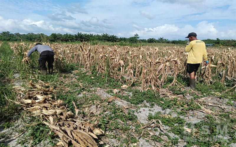 Bhabinkamtibmas Polsek Nanga Tayap Dampingi Pengelolaan Ulang Lahan Jagung Pasca Panen di Desa Simpang Tiga Sembelangaan