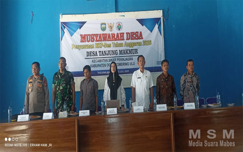 MediaSuaraMabes, Baturaja – Musyawarah Desa terkait Penyusunan Rencana Kerja Pemerintah Desa (RKPDes) Tahun Anggaran 2026 dan Daftar Usulan Rencana kerja Pemerintah Desa (DU-RKPDes) Tahun Anggaran 2026 Desa Tanjung makmur Kecamatan Sinar peninjauan OKU, Rabu 23/7/2025 di Aula Kantor Desa Tanjung makmur.