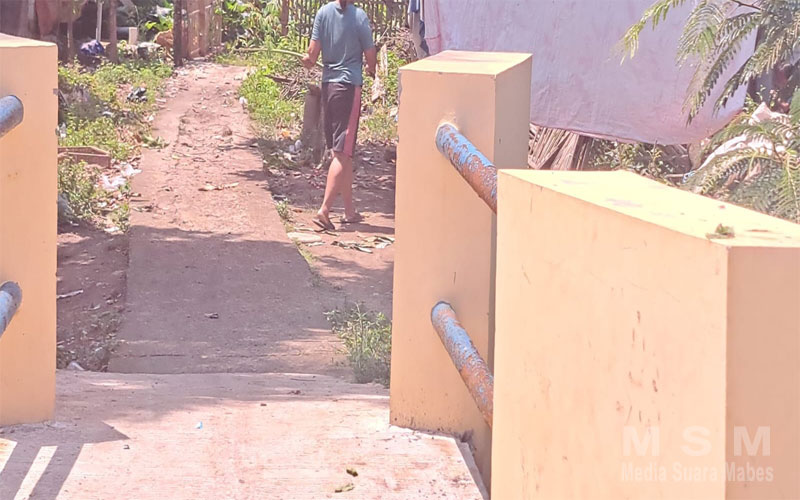 Salah satu warga sekitar membenarkan bahwa pegangan Jembatan tersebut menggunakan paralon saat tim investigasi melakukan penggalian informasi pada Sabtu 23/08/2025.