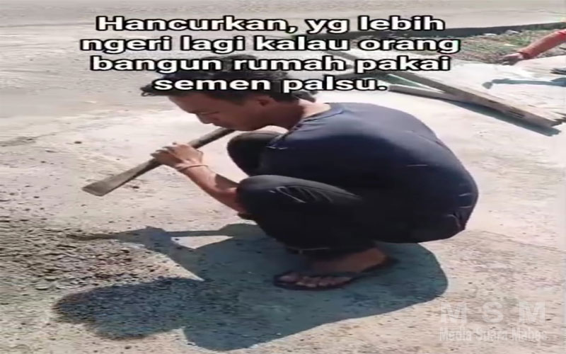 Dalam video kedua, seseorang sedang memghancurkan semen yang sudah dicampur dengan pasir sembari mengatakan “nah, dua minggu. Kalau kalian menyalahkan adukan, ini salah besar ya. Ini soalnya empat satu (adukan campuran semen dan pasir). Kami penasaran, kami buat satu satu, masih sama hasilnya. Hancurkanlah, hancurkan,” katanya dengan nada kesal.