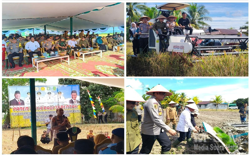 MediaSuaraMabes, Sambas Kalbar – Kegiatan Panen Raya Padi Serentak bersama Presiden Republik Indonesia yang digelar secara nasional di 14 provinsi turut dilaksanakan di Dusun Lestari, Desa Mensere, Kecamatan Tebas, Kabupaten Sambas, Kalimantan Barat, pada Senin (7/4/2025). Kegiatan ini merupakan bentuk dukungan terhadap program ketahanan pangan nasional sekaligus memperkuat sinergi antara pemerintah pusat dan daerah dalam mendorong swasembada pangan.