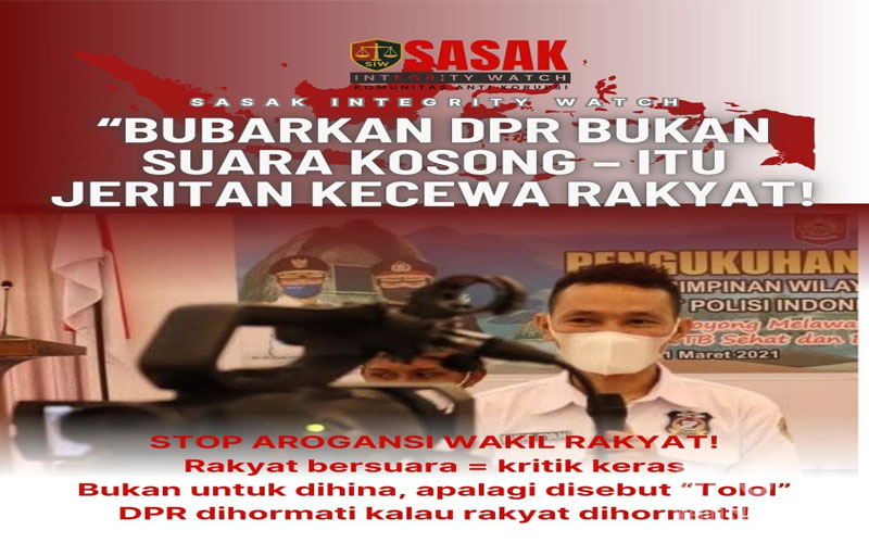 “Kalau DPR ingin dihormati, maka hormatilah rakyat terlebih dahulu,” tegas Bung Syam Panggilan Akrab Ketum Sasak Integrity Watch (SIW) melakui komunijasi WhatsApp.