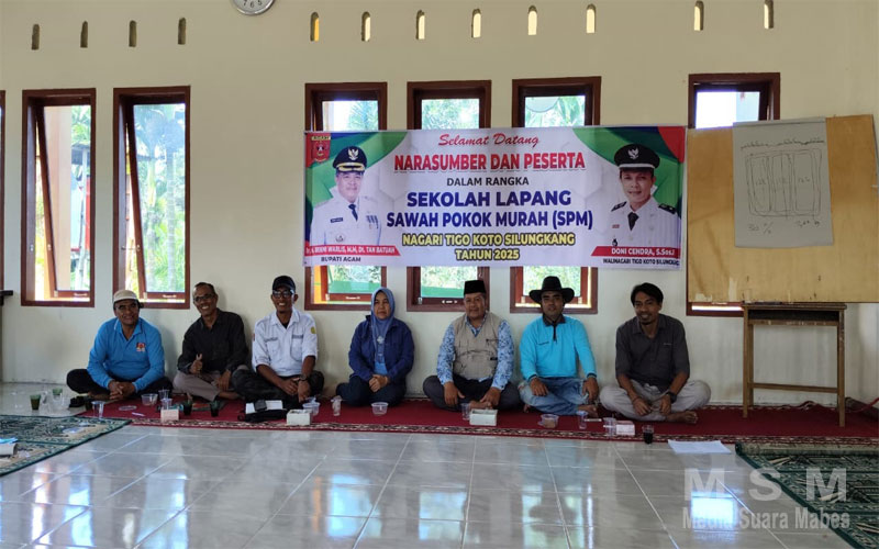MediaSuaraMabes, Agam – Ketua Program Study Magister Agroteknologi Universitas Taman Siswa Padang, DR.Ir. Jamilah, MP.,menjadi menjadi pusat perhatian ketika menjadi Narasumber Istimewa dengan presentasikan materi tentang Pertanian Berkelanjutan (Agriculture Suistainable) dan Sawah Pokok Murah (Agriculture Low Cost) pada Sekolah Lapangan Sawah Pokok Murah (SL-SPM) yang diikuti 20 orang perwakilan kelompok tani dibuka oleh Camat Palembayan, Sabirun, S.AP. yang digelar di Nagari Tigo Koto Silungkang Kecamatan Palembayan pada Senin (12 Mei 2025)