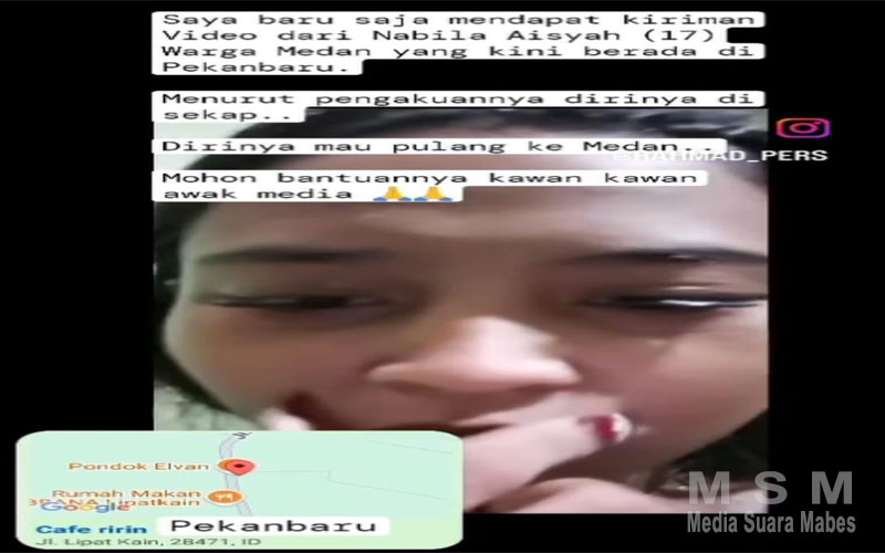 “Mohon bantuannya kawan-kawan awak media, Saya baru saja mendapat kiriman video dari NA(17) warga Medan yang kini korban dugaan disekap, di tipu dalam hal dipekerjakan ke tempat hiburan malam yang sebutan cafe remang-remang dan disuruh untuk menggunakan baju Sexy sambil disuruh melayani tamu para laki-laki di sebuah usaha cafe remang-remang milik Ririn tersebut yang berada di wilayah lipat kain kecamatan kampar kiri kabupaten Kampar provinsi Riau” Ujar alius sambil memberi nomor Whatshapp NA diduga korban.