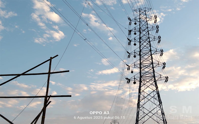 MediaSuaraMabes, Bekasi – Sebuah insiden teknis terjadi di kawasan Tanggul Kali Blencong, RT 01 RW 19, Desa Segara Makmur, Kecamatan Tarumajaya, saat proses penggantian kabel Saluran Udara Tegangan Tinggi (SUTT) tengah dilaksanakan. Kegiatan ini merupakan bagian dari program pemeliharaan jaringan ketenagalistrikan oleh PLN melalui mitra kerjanya, PT Bukaka Teknik Utama.