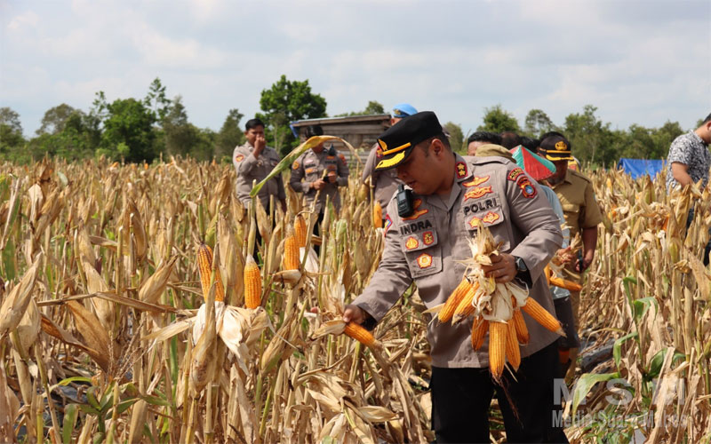 Panen kali ini merupakan panen jagung perdana dan masih ada lahan-lahan lain yang akan dipanen. Lanjut Kapolres.