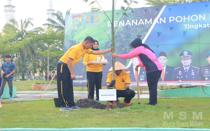 MediaSuaraMabes, Kampar – Selain kegiatan Karhutla Fun Run 5 K, Polres Kampar juga melaksanakan penanaman pohon di Taman Kota Bangkinang, pada Ahad (13/4/2025) pagi.