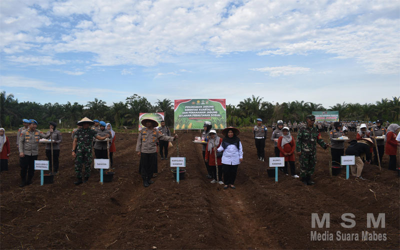 MediaSuaraMabes, Kampar Utara – Komitmen Polri dalam mendukung program swasembada pangan nasional kembali dibuktikan dengan partisipasi aktif Kapolres Kampar AKBP Mihardi Mirwan, dalam kegiatan penanaman jagung serentak kuartal III tahun 2025. Rabu (9/7/2025), Kapolres Kampar hadir langsung di Dusun 2, Desa Kayu Aro, Kecamatan Kampar Utara, Kabupaten Kampar, untuk melakukan penanaman jagung di lahan perhutanan sosial dalam rangka mendukung swasembada pangan.