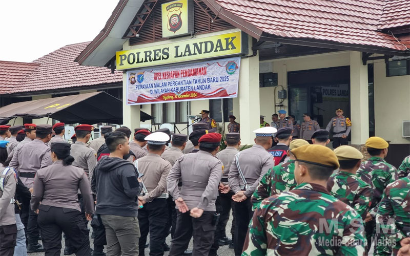 IndoGlobalNews (Jaringan MSM), Landak Kalbar ~ Pada hari ini, Selasa, 31 Desember 2024, Kapolres Landak, AKBP Siswo Dwi Nugroho, S.H., S.I.K., memimpin langsung kegiatan Apel Gabungan Kesiapan Personel untuk Pengamanan malam tahun baru 2025. Kegiatan yang berlangsung di halaman Mako Polres Landak ini bertujuan memastikan keamanan ibadah malam tahun baru, aktivitas masyarakat, dan pengaturan lalu lintas guna mengantisipasi kemacetan di wilayah Kota Ngabang.