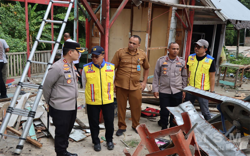 IndoGlobalNews (Jaringan MSM), Pidie Jaya – Kapolres Pidie Jaya, AKBP Ahmad Faisal Pasaribu, S.H., S.I.K., M.H., turun langsung meninjau lokasi tanah longsor akibat abrasi Sungai Putu di Jl. Banda Aceh-Medan, tepatnya di Gampong Keude Lueng Putu, Kecamatan Bandar Baru, Kabupaten Pidie Jaya, Senin (6/1/2025) pukul 12.50 WIB.