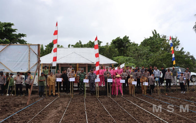 IndoGlobalNews (Jaringan MSM), Talaud – Dalam upaya mendukung program ketahanan pangan nasional, khususnya program Asta Cita Presiden RI, Kapolres Kepulauan Talaud AKBP Arie Sulistyo Nugroho,SIK,MH berkolaborasi dengan Forkopimda bersama Pemerintah Kabupaten Kepulauan Talaud melaksanakan penanaman jagung di lahan pertanian BPP Kecamatan Melonguane Desa Ambela Kecamatan Melonguane. Kegiatan yang berlangsung pada Selasa, 21 Januari 2025.siang.