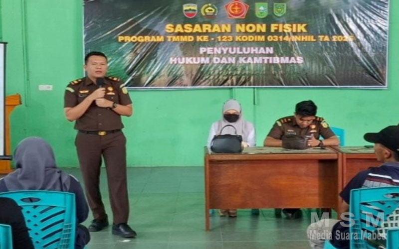 IndoGlobalNews (Jaringan MSM), Kab. Indragiri Hilir – Dalam rangka mendukung program sasaran non-fisik TNI Manunggal Membangun Desa (TMMD) ke-123, Kodim 0314/Inhil menggelar penyuluhan hukum dan keamanan serta ketertiban masyarakat (Kamtibmas). Kegiatan ini berlangsung di Gedung Serba Guna “Tuah Negri”, Desa Mumpa, Kecamatan Tempuling, Kabupaten Indragiri Hilir (Inhil), dengan menghadirkan pemateri dari Kejaksaan Negeri (Kejari) Inhil.