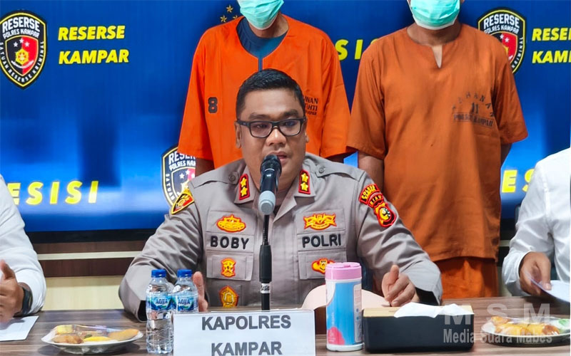 Konferensi pers ini dipimpin oleh Kapolres Kampar AKBP Boby Putra Ramadhan S, didampingi Kasat Reskrim AKP Gian Wiatma Jonimandala dan Kanit PPA Aipda Syamsul Bahri.