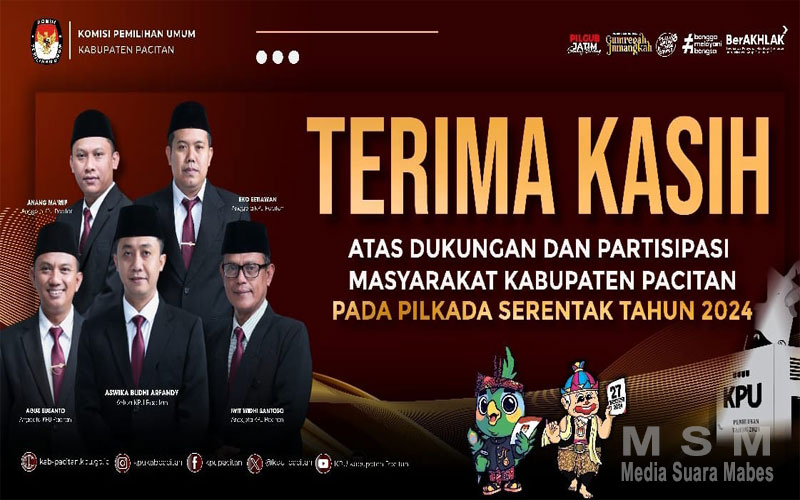 IndoGlobalNews (Jaringan MSM), Pacitan – Komisi Pemilihan Umum (KPU) Kabupaten Pacitan mengucapkan terima kasih yang sebesar-besarnya kepada seluruh pihak yang telah berkontribusi dalam menyukseskan pelaksanaan Pemilihan Kepala Daerah (Pilkada) Serentak 2024.