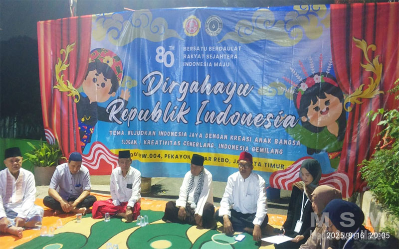 MediaSuaraMabes, Jaktim – Dalam rangka memperingati Hari Ulang Tahun Kemerdekaan Republik Indonesia ke-80, warga RT 01 RW 04 Pekayon, Pasar Rebo, Jakarta Timur, menggelar Malam Tasyakuran yang penuh kebersamaan dan kekhidmatan.