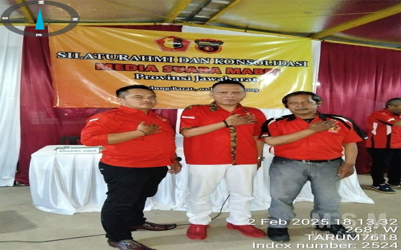 IndoGlobalNews (Jaringan MSM), Bandung Barat – Media Suara Mabes menggelar silahturahmi dan konsolidasi dihadiri langsung oleh pimpinan umum Suratno,S.Kom, Kaperwil dan Kabiro Se- Jawa Barat. Acara yang digelar di Desa Cipendeuy, Kecamatan Padalarang, Kabupaten Bandung Barat Minggu,(2/2/2025).