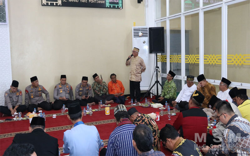 MediaSuaraMabes, Pontianak – Guna membangun Demokrasi yang Inklusif dan Berkeadilan demi terciptanya Harmonisasi kehidupan di Bumi Khatulistiwa, Polda Kalbar laksanakan silaturahmi dan Diskusi bersama Forkopimda, Mahasiswa, Dan Elemen Masyarakat, bertempat di Masjid An-Nur Polda Kalbar. (Jumat, 19/9/2025)