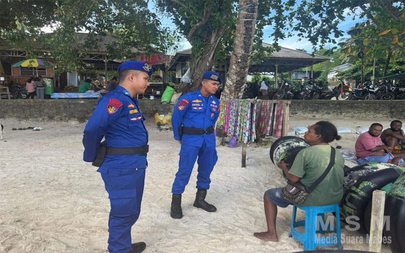 Dipimpin langsung oleh Direktur Polairud Polda Papua Barat, Kombes Pol Sulistyono,S.H., M.’M., personel Ditpolairud menyisir kawasan pantai yang menjadi destinasi favorit warga saat liburan. Selain melakukan pengamanan, petugas juga memberikan imbauan kepada masyarakat dan pengunjung agar tetap waspada serta mengutamakan keselamatan saat beraktivitas di wilayah perairan.