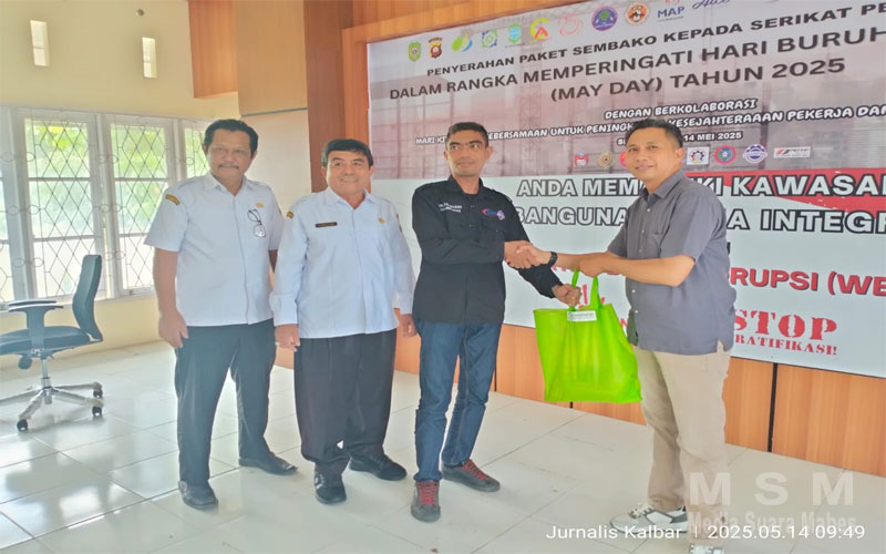 MediaSuaraMabes, Singkawang Kalbar – Kerja Bersama Mewujudkan Pekerja/Buruh Yang Kompeten”. Masih dalam rangka memperingati Hari Buruh Internasional (May Day) 1 Mei 2025, Dinas Penanaman Modal dan Tenaga Kerja (DPMTK) Kota Singkawang, Provinsi Kalimantan Barat melaksanakan kegiatan pembagian sembako kepada pengurus Serikat Buruh/Serikat Pekerja Se-Kota Singkawang. Bertempat di ruang rapat (DPMTK) Jln. Gunung Kerinci Nomor 11, Kel. Pasiran, Kec. Singkawang Barat, Kota Singkawang, Kalimantan Barat. Rabu, (14/05/2025).