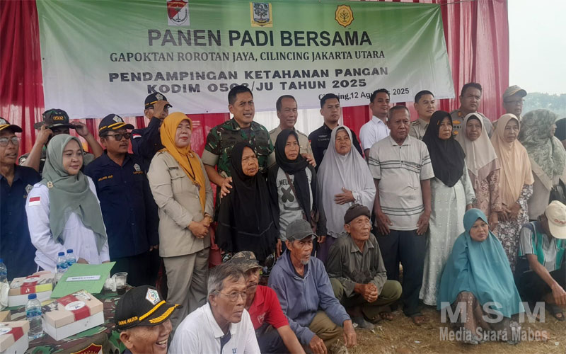 MediaSuaraMabes, Cilincing Jakarta Utara – Gabungan Kelompok Kegiatan (Gapoktan) Rorotan Jaya bersama Kodim 0502/Jakarta Utara sukses menggelar acara panen padi bersama tahun 2025 di sawah Poktan Bangkit Bersama, Jalan Sungai Kendal RT 001/08, Kelurahan Rorotan, Cilincing, Jakarta Utara.