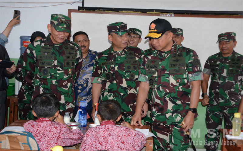 Panglima TNI saat peninjauan MBG tersebut didampingi Pangkostrad, Pangdam III/Siliwangi, Para Asisten Panglima TNI, Danpuspom, Kapuskes dan Kapuspen TNI, Kamis (06/02/2025).