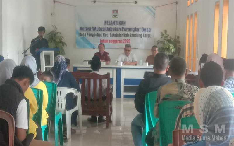 MediaSuaraMabes, Bandung Barat — Pemerintah Desa Pangauban, Kecamatan Batujajar, Kabupaten Bandung Barat, menggelar pelantikan perangkat desa baru sebagai bagian dari upaya penyegaran struktural demi mewujudkan tata kelola pemerintahan desa yang lebih profesional dan responsif terhadap kebutuhan masyarakat. Acara pelantikan berlangsung di aula kantor desa dengan dihadiri oleh Camat Batujajar, Bhabinkamtibmas, Babinsa, perwakilan BPD, tokoh masyarakat, serta keluarga dari perangkat yang dilantik.