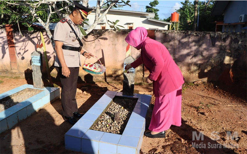 Setelah kegiatan upacara selesai, dilanjutkan dengan prosesi tabur bunga di pusara Makam Pahlawan oleh Wakapolres Belitung Timur dan diikuti oleh PJU dan Bhayangkari Cabang Belitung Timur.