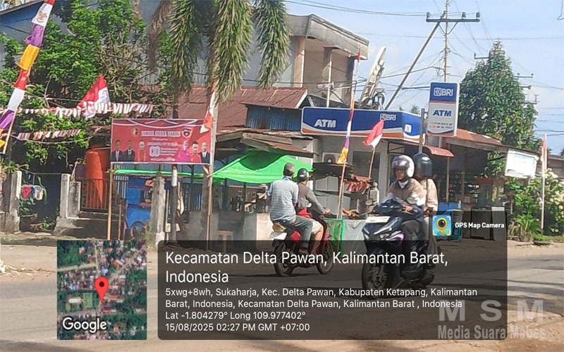 MediaSuaraMabes, Ketapang – Dengan penuh semangat proklamasi kemerdekaan dan jiwa kebangsaan nasionalisme yang tinggi menumbuhkan rasa cinta tanah air ditengah masyarakat, dalam rangka menyambut HUT RI Ke-80 Kemerdekaan Republik Indonesia (RI), keluarga besar Media Suara Mabes (MSM) khususnya di wilayah Kalimantan-Barat, Biro (MSM) Kabupaten Ketapang, pasang sepanduk yang bertuliskan, Mengucapkan DIRGAHAYU HUT (RI) KE-80, Bersatu Berdaulat, Rakyat Sejahtera, Indonesia Maju.