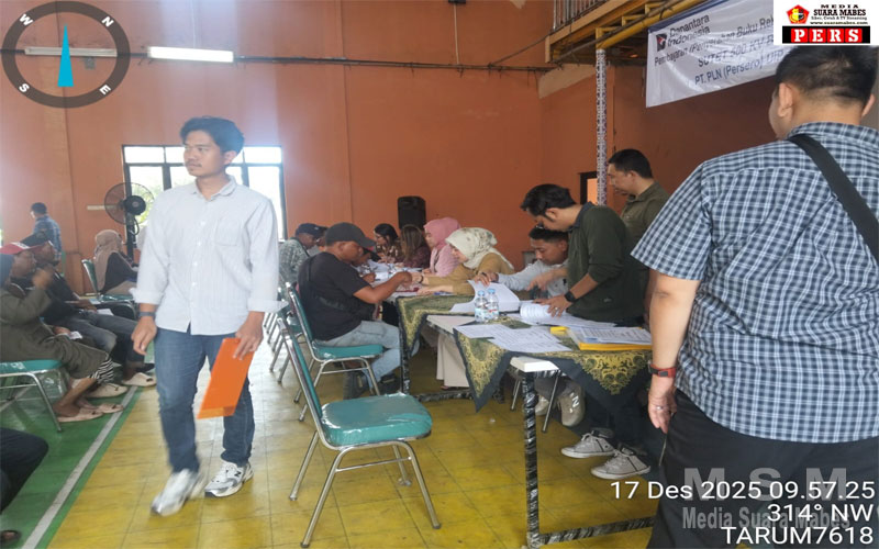 MediaSuaraMabes, Tarumajaya – PT PLN (Persero) UIP JBB bersama UPP JBB 3 melaksanakan kegiatan pembayaran kompensasi Right of Way (ROW) Saluran Udara Tegangan Ekstra Tinggi (SUTET) 500 KV jalur Bekasi–Muara Tawar melalui penyerahan buku rekening kepada warga terdampak.