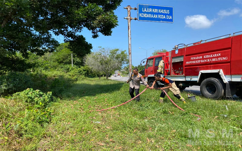 Polda Babel Dan Damkar Gerak Cepat Padamkan Karhutla Di Jalur Perkantoran Gubernur