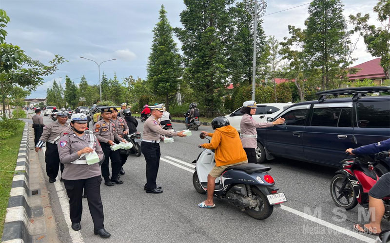 IndoGlobalNews (Jaringan MSM), Pontianak Kalbar – Pada momentum bulan suci Ramadhan 1446 H, Personel Dit Lantas Polda Kalbar dan Personel Dit Samapta Polda Kalbar melaksanan bagi takjil Gratis kepada Masyarakat menjelang waktu berbuka Puasa. (Selasa, 4/3/2025)