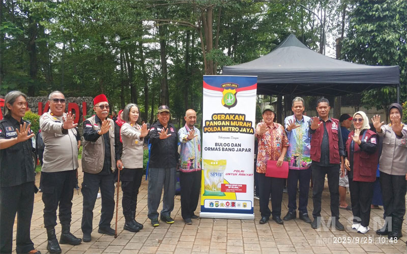 MediaSuaraMabes, Jakarta – Dalam upaya membantu masyarakat mendapatkan akses pangan dengan harga terjangkau, Polda Metro Jaya bekerja sama dengan Bulog serta Ormas Kebangkitan Jawara dan Pengacara (Bang Japar) pimpinan Hj. Fahira Idris SE, MH, menggelar Gerakan Pangan Murah di Kecamatan Pasar Rebo, Jakarta Timur, Kamis (25/9/2025).