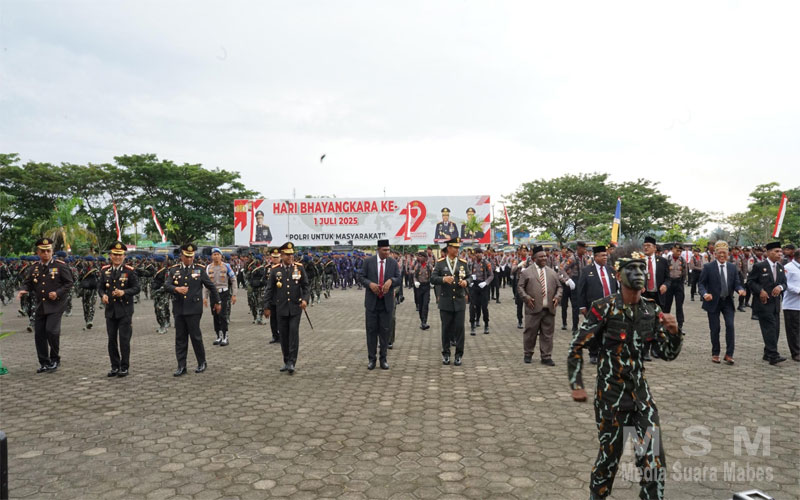 MediaSuaraMabes, Manokwari Papua Barat – Daerah (Polda) Papua Barat menggelar upacara dalam rangka memperingati Hari Ulang Tahun (HUT) Bhayangkara ke-79 yang dipimpin langsung oleh Kapolda Papua Barat, Irjen Pol. Johnny Eddizon Isir, S.I.K., M.T.C.P., bertempat di halaman Mapolda Papua Barat pada hari Selasa (1/07/2025).