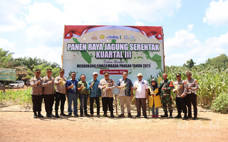 “Panen raya kali ini difokuskan pada komoditas jagung yang ditanam di lahan perkebunan milik PT. SMM. Dilaporkan bahwa panen dilakukan pada lahan seluas 1 hektare dengan estimasi hasil panen mencapai 1,3 ton (belum dipipil).” Ujar AKBP. Indra.