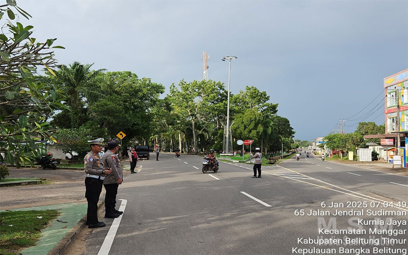 IndoGlobalNews (Jaringan MSM), Babel – Untuk tetap menjaga dan menciptakan kelancaran arus lalu lintas di seputaran Taman Kota Manggar personel Polres Belitung Timur melaksanakan pemantauan dan pengaturan lalu litnas di jalan raya serta persimpangan yang ada di Taman Kota Manggar, senin (6/1/2025) pagi.