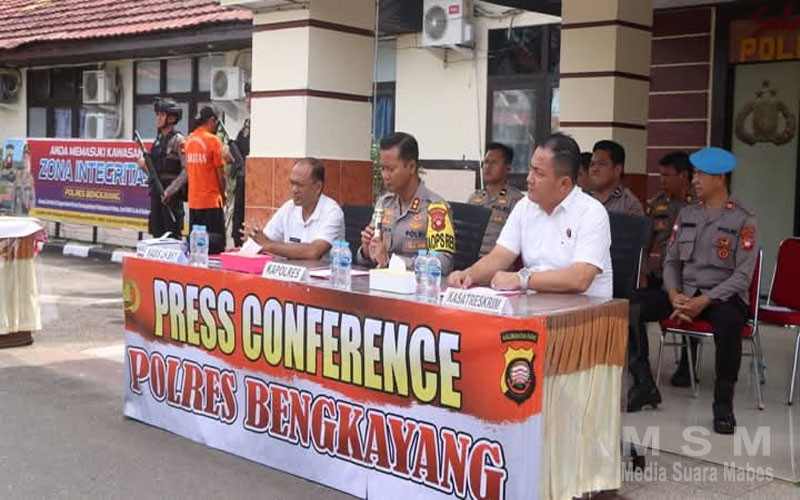 IndoGlobalNews (Jaringan MSM), Bengkayang Kalbar – Polres Bengkayang Polda Kalbar menggelar konferensi pers terkait pengungkapan kasus tindak pidana illegal mining atau pertambangan tanpa izin di Desa Kinande, Kecamatan Lembah Bawang, Kabupaten Bengkayang, Rabu (19/2) di halaman Polres Bengkayang dan dihadiri oleh sejumlah pejabat kepolisian serta para awak media.