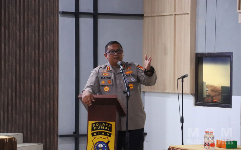 Kapolres Dumai AKBP Hardi Dinata H., S.I.K., M.M., dalam sambutannya menekankan bahwa penanganan Karhutla bukan hanya tanggung jawab TNI, Polri, atau BPBD semata, melainkan memerlukan sinergi seluruh elemen masyarakat.