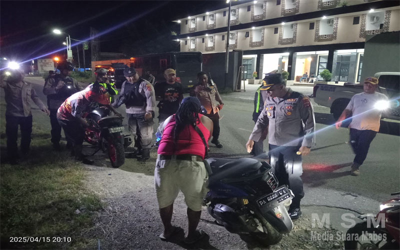 MediaSuaraMabes, Nabire Papua Tengah ~ Dalam upaya menjaga stabilitas keamanan dan ketertiban masyarakat (harkamtibmas), Polres Nabire melaksanakan kegiatan rutin yang ditingkatkan (KRYD) pada Selasa malam (15/4). Kegiatan yang berlangsung sejak pukul 19.30 WIT tersebut digelar di dua titik strategis, yakni Pasar Karang, Kelurahan Karang Tumaritis, serta di Perempatan Hotel Adamant, Jalan Trans Nabire–Enaro, Kelurahan Bumi Wonorejo.