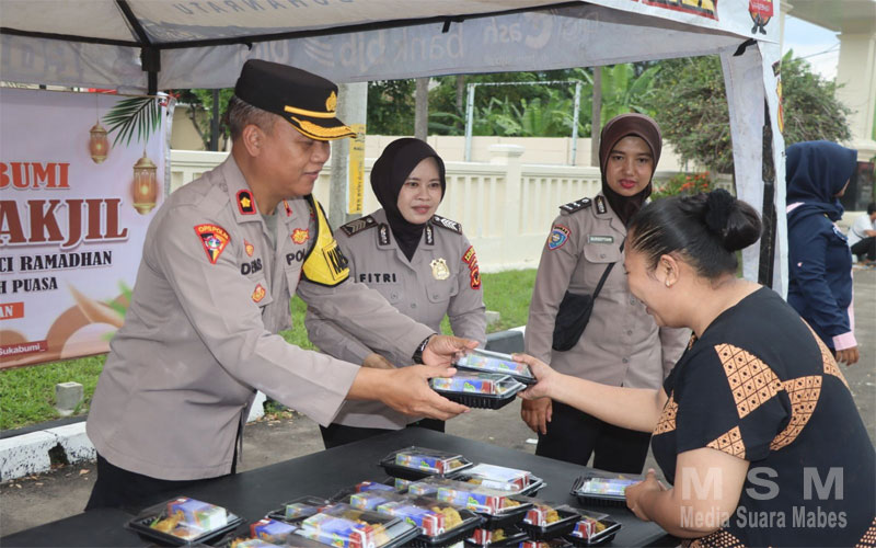 IndoGlobalNews (Jaringan MSM), Sukabumi – Dalam rangka menyemarakkan bulan suci Ramadan, Polres Sukabumi menggelar aksi sosial dengan membagikan takjil gratis kepada para pengguna jalan di depan Mako Polres Sukabumi, Senin, (03/03). Kegiatan ini sebagai bentuk kepedulian dan kebersamaan dengan masyarakat yang sedang menjalankan ibadah puasa.