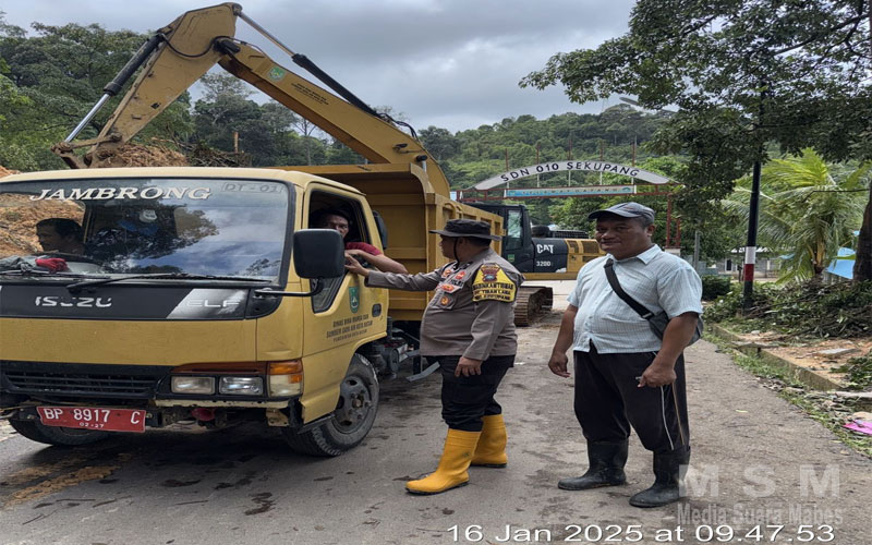 IndoGlobalNews (Jaringan MSM), Sekupang – Dalam upaya menjaga keamanan dan ketertiban masyarakat (kamtibmas), Polsek Sekupang Polresta Barelang Polda Kepulauan Riau terus hadir di tengah masyarakat. Salah satu kegiatan terkini adalah pengawasan proses pengangkatan tanah longsor oleh Pemerintah Kota Batam di bukit depan SDN 010 Tiban Kampung, RT 06 RW 12, Kelurahan Tiban Lama, Kecamatan Sekupang, Rabu (15/01/2024).