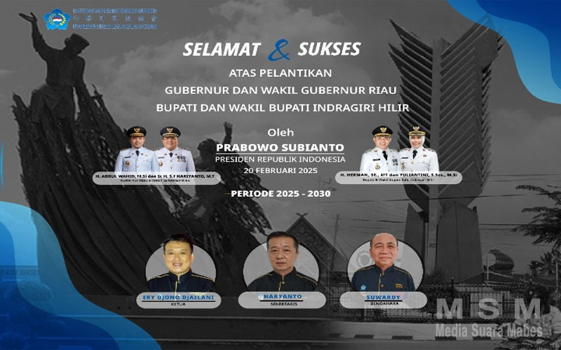 IndoGlobalNews (Jaringan MSM), Kab. Indragiri Hilir – Paguyuban Sosial Marga Tionghoa Indonesia (PSMTI) Kabupaten Indragiri Hilir turut menyampaikan ucapan selamat atas pelantikan H. Abdul Wahid, M.Si dan Ir. Harianto, MT sebagai Gubernur dan Wakil Gubernur Provinsi Riau, serta H. Herman, SE., MT dan Yuliantini, S. Sos., M.Si sebagai Bupati dan Wakil Bupati Kabupaten Indragiri Hilir periode 2025-2030.