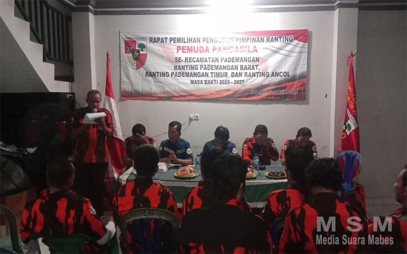IndoGlobalNews (Jaringan MSM), Pademangan – Rapat Pemilihan Pengurus Pimpinan Ranting Pemuda Pancasila Se-Kecamatan Pademangan Jakarta Utara telah dilaksanakan dengan sukses. Pemilihan yang digelar di kantor Balai Warga 013 Pademangan Barat ini mencakup tiga ranting yang ada di kecamatan Pademangan, yaitu Ranting Pademangan Barat, Ranting Pademangan Timur, dan Ranting Ancol, dengan masa bakti yang akan berlangsung dari 2025 hingga 2027.