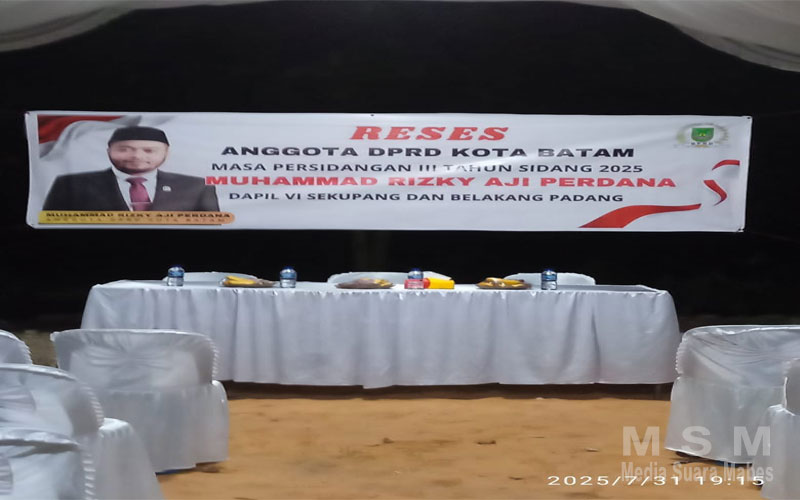 Ketua DPRD kota Batam kepri,Muhamad Rizky Aji Perdana, mengatakan pada reses yang pertama kalinya dilakukan Masa Tahun Periode 2025– ini, seluruh anggota dewan siap menyerap dan menindaklanjuti aspirasi konstituen dan pengaduan masyarakat, kemudian akan dikumpulkan dan desa menjadi Pokok Pikiran (Pokir) DPRD dan diteruskan ke Pemerintah Batam Kepri,