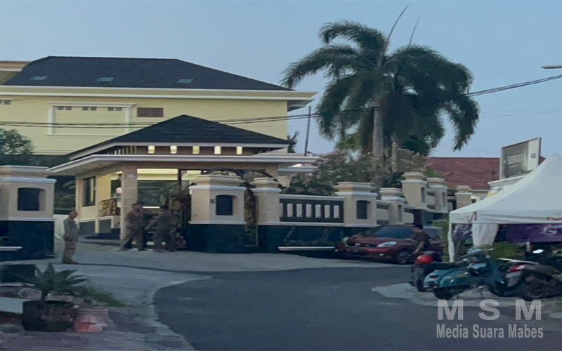 Terlihat puluhan petugas Kejati Lampung didalam rumah mantan Bupati Pesawaran, Dendi Ramadhona petugas polisi militer di dalam rumah sejumlah mobil masuk ke dalam rumah.