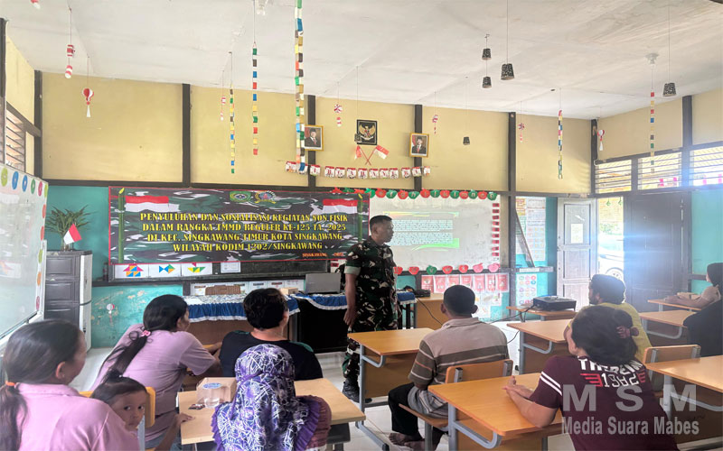 MediaSuaraMabes, Singkawang – Satuan Tugas (Satgas) TNI Manunggal Membangun Desa (TMMD) Reguler ke-125 Kodim 1202/Singkawang menggelar sosialisasi bahaya judi online kepada masyarakat di Jl. Gambir, Kelurahan Mayasopa, Kecamatan Singkawang Timur, Kota Singkawang. Senin (04/08/2025).